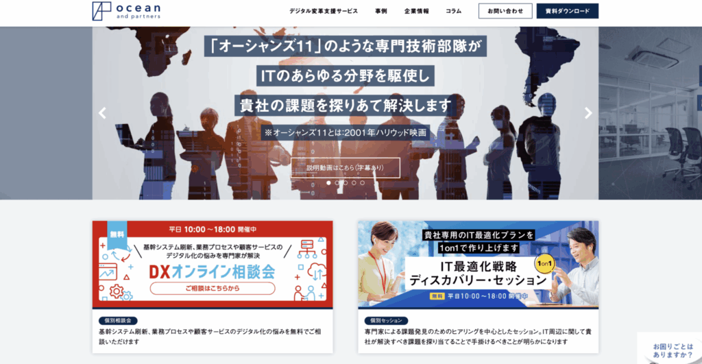 オーシャン・アンド・パートナーズ株式会社は、ITプロジェクト支援を中核とし、デジタル&テクノロジー領域で企業の変革を支えるプロフェッショナル集団です。創業以来、基幹系システムの再構築やクラウド移行、DX推進支援など、幅広い分野でコンサルティングから実行支援までを一気通貫で提供。特に「現場に根差した支援」に強みを持ち、戦略的視点と技術的実装力の両立により、顧客の課題解決を加速させます。
